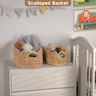 Scalloped Wicker Basket, Set Of 2 Hand-woven Natural Rattan Baskets With Built-i