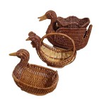 Vintage Set Of 3 Natural Woven Wicker Rattan Duck Chicken Birds Basket Planter