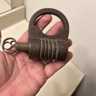 Large 5” Vintage German Padlock Lock With Barrel Key