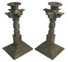 Brass Ecclesiastical Candlestick Holder Pair Mid 19th Century Vintage Antique