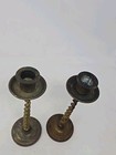 2 Antique Brass Push Up Candlesticks Excellent 19th