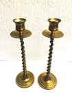 Beautiful Pair Antique Twisted Brass Candle Holders Signed P