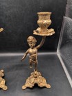 Pair Ornate Antique Brass Figural Cherub Candlesticks- 9' Tall- French Style