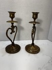 Cato Solid Brass Heart Candle Holders Pair Approx 8 In Tall