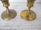 Vintage Pair Heavy Solid Brass Engraved Candle