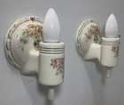 Pair Vintage Antique Porcelain Wall Sconce Light Fixtures Floral Art Deco