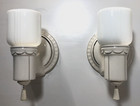 Vintage Pair(2) White Porcelain Wall Light Fixtures Sconces Art Deco Style