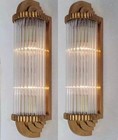 Art Deco Vintage Brass & Glass Rod Wall Sconce Light Fixtures - Antique Set Of 2