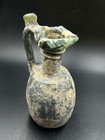 An Authentic Ancient Roman Glass Bottle With Rare Green Patina Color