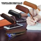 Genuine Leather Zipper Pen Bag Pencil Holder Case Stationery Storage Pouch Bag