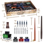 Calligraphy Pen Set With Wooden Dip Pen, Brass Holder, 11 Nibs, 7 Ink Bottles