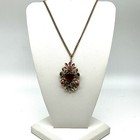 Vintage Brown Glass Pendant Necklace Autumnal Made In Austria 2" W/ 22" Chain