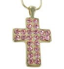Pink Crystal Rhinestone Gold Tone Cross Pendant 1 1/2" + Chain Necklace 20"