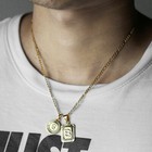 Mens Womens Stainless Steel Figaro Chain Necklace W Cross Pendant Gold Plated