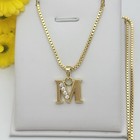 Yellow Gold Plated Stainless Steel Initial Letter A-z Pendant Necklace Box Chain