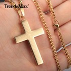 Women Men Stainless Steel Plain Silver Gold Plated Cross Pendant Cuban Necklace