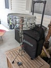 Ludwig Metal Snare Drum Black White Badge W Stand Carry Case, Evan G1 Coated