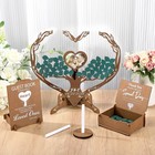 Elegant Wooden Wedding Guest Book W/ 88pcs Hearts And Stand Reception Guestbook