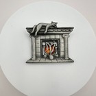 Vintage 90s Ajc Pewter Cat Fireplace Brooch Pin Cozy Hearth Amber Glass Jewelry
