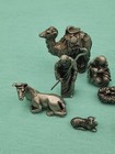Pewter 8 Piece Nativity Set Vintage 3 Wise Men Mary Shepherd Sheep Donkey