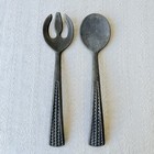 Vintage Gorham Pewter Salad Serving Fork Spoon Set Mid Century Textured Handles