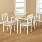 White 5 Piece Wooden Dining Set 4 Fabric Chairs Table Kitchen Dinette Furniture