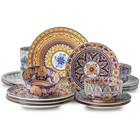 12 Piece Dinnerware Set Round Dishes Dinner Teal Medallion Plates Kitchen New