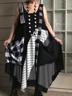 Lagenlook Artsy Boho 2 Pieces Asymmetry Hoodie Tunic Patchwork Dress Necklace