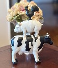 Farmhouse, Rustic Stacked Cow Pig Chicken Figurine 12x9”, Resin, Black White