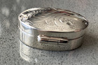 Sterling Silver Beautifull Vintage Elongated Oval Engraved Pill Box