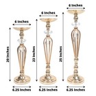 3 Gold Metal Crystals Pillar Candle Holders Pedestal Stand Set Party Events