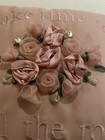 Vtg Cross Stitch Pillow 13x13 Floral Rose Design Gold Base W/ Silk Tassel Fringe