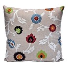 Crewel Embroidered Floral 20" Decorative Throw Pillow Cover Linen