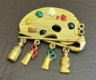 Art Artist Enamel Palette Pin/brooch/pendant Gold Tone Multi Color Stones