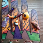 Unusual Artist Handmade Clay & Wire Colorful Whimsical Cat Brooch Collar Pin