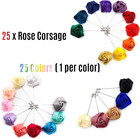 25pcs Men's Lapel Pins Satin Flower Boutonniere Pin Rose Flower Brooch Fro Suits