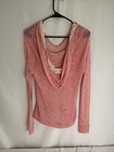 Women’s Fuchsia Sheer Hoodie Top Size M Long Sleeve Pullover Cozy Orange