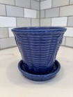 Vtg Usa Pottery Shawnee Pottery Planter Pot Bows Basket Weave Navy Blue