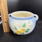 Vintage Pottery Flower Planter Blue White Yellow Rose Relief Double Handle Pot