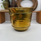 Vintage 1980s Linear Hammered Brass Toned Metal Round Planter Pot 14”d X 12”h