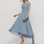 Plus Size Mother Of The Bride Dress O Neck 3/4 Sleeve Appliques Party Prom Gowns