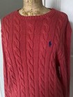 Polo Ralph Lauren Mens Cable Knit Cotton Blue Pony Logo Sweater Coral Crew Neck