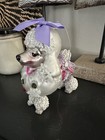 Blown Glass Ornament White Bejeweled Poodle Dog Purple Ribbon Nwt