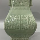 An Early 20th Century Chinese Twin Handled Celadon Porcelain Vase Late Qing