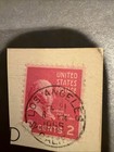 2 Cent Stamp On Expired Postcard Cutout Los Angeles 1955 John Adams