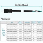 Ac Power Cord 5ft 12 Awg 3 Prong Replacement Power Supply Cord Cable 5-15p Black