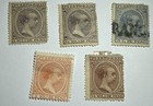 Vintage World Stamp Lot Of 5 1890s Puerto Rico Stamps Sello Alfonso St-830