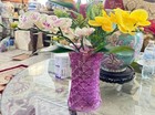 Modern Bud Vase With Silk Flowers And Purple Stones 10" H X 3.5" Wide