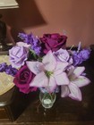 Floral Arrangement With Multi-colored Silk Flowers In Purple Mcm Vase