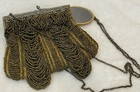 Art Deco Flapper Bead Purse Antique Gold Lamé Handbag Metal Frame Bag Vintage